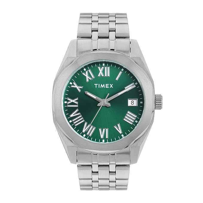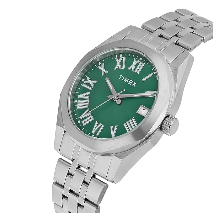 • Classic Style with a Modern Edge – This TIMEX watch for men features a sleek 42mm Green dial and Silver Stainless Steel Bracelet, blending timeless design with everyday wearability. A perfect pick for those seeking wrist watch for man options that make a subtle yet strong statement in both casual and formal settings.